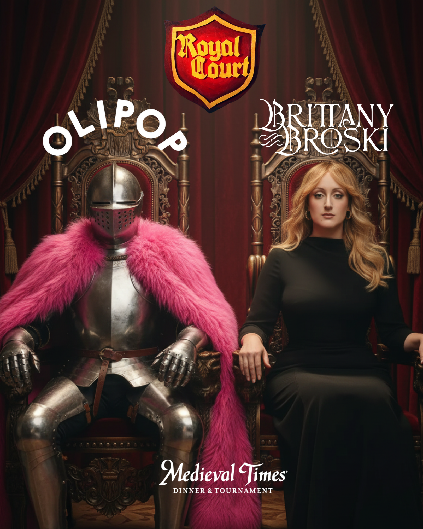 OLIPOP and Brittany Broski host a special Royal Court event at Medieval Times to kick off Season 4 of her podcast. With Sir Gutworthy, she transforms the arena into a Flavor Kingdom, each section repping a top OLIPOP flavor. Throughout the season, anyone she deems worthy earns an exclusive Gutworthy fuzzy cape.