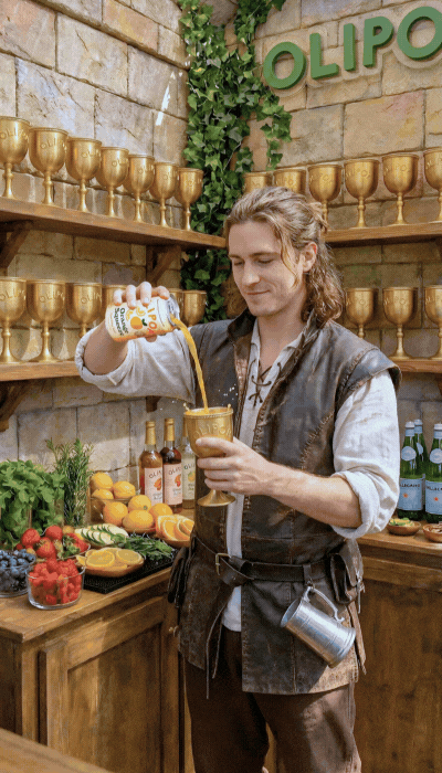 At The Grail Gathering, fans meet The Pickle Priest, a beloved ren-fair icon known for his dramatic pickle blessings. Here, he serves as OLIPOP’s playful sage of gut health, anointing attendees with a crunchy, probiotic-rich pickle ritual. Each blessing marks you as a chosen one and ends with an OLIPOP ‘OLIGRAIL’ toast to your gut-health quest.