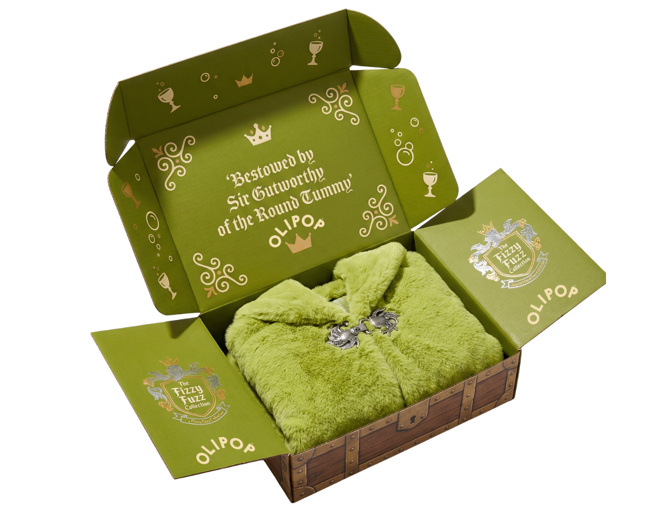 Straight from the wardrobe of Sir Gutworthy of the Round Tummy comes The Fizzy Fuzz Collection, a limited drop of plush, flavor-colored capes inspired by OLIPOP’s most iconic cans. From Grape purple to Strawberry Vanilla pink, each fuzzy cloak lets fans rep their favorite flavor with royal flair.